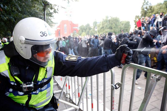 Auch am 30. August drehten die Bullen bei einer Demonstration von 150 Nazis der Schwedenpartei frei. Der Tag begann schon mit der Durchsuchung des linken Kulturzentrums Cyclopen. Später am Tag griffen die Bullen dann die rund 10.000 Gegendemonstrant*innen an, was natürlich in Riots endete. Ausführliche Informationen findet ihr hier.